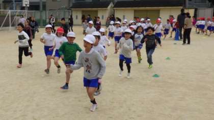 12月のマラソン大会に向けて,今日から業間マラソンが始まりました。今日は2・4・6年生・わかたけ学級が業間マラソンを行いました。ウォーミングアップで音楽が1曲流れる間歩いた後,2曲音楽が流れる間走ります。その後,クールダウンで1曲歩きます。風が寒いですが,子どもたちは元気に走っていました。