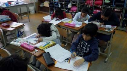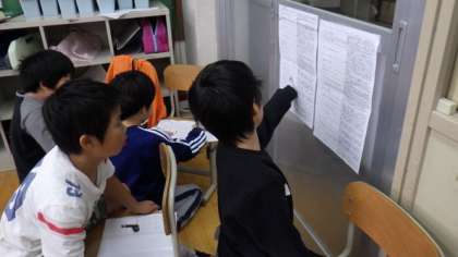3年生はスーパーマーケットへ見学に行ったり,お店の方に質問したりしたことをもとに,パンフレットにまとめています。4年生は算数で,面積の学習をしています。