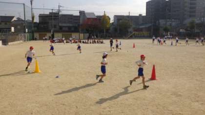 5年生は体育で,ジョギングの学習をしています。6年生は算数「場合を順序よく整理して」の学習で,求める方法について自分の考えを発表しています。