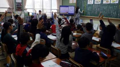 5年生は社会で,日本の製造業について考えています。4年生は道徳で,自分の意見を発表しています。2年生は音楽で,鑑賞の学習をしています。