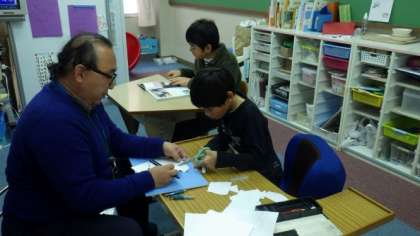 ワークシートを使って学習したり,図画工作の作品をつくったりしています。算数の学習では,電卓を使って答えを確かめています。