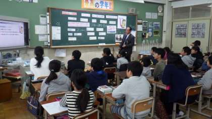 警察の方に来ていただき,「非行防止教室」の授業をしていただきました。社会のルールを守ることや,インターネットを使ったいじめも犯罪であることなどについて,話をききました。