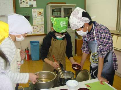 担任の先生は,どのクラスも全部の班のをいただいて,だしの味を比べています。
