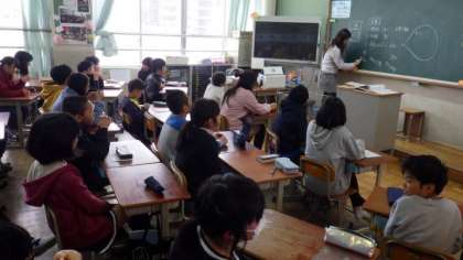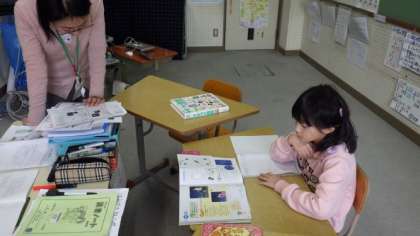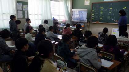 4年草の芽学級は理科で,オリオン座の観察の仕方について確認しています。5年生は算数で,プリントを使って復習をしています。6年生は卒業文集のクラスページの内容について話し合っています。