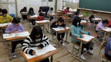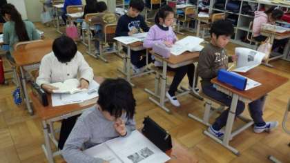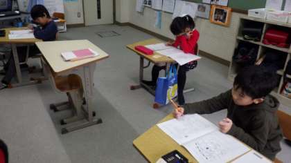 今日と明日の2日間,3〜6年生がジョイントプログラム・プレジョイントプログラムのテストを行います。今日は算数と社会に取り組みました。