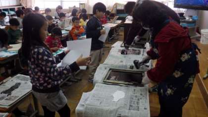 11日(金)2年図画工作 紙版画