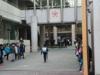 2年3組が校門で朝のあいさつ運動に取り組みました。寒い朝でしたが,元気に朝のあいさつを行うことができました。