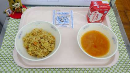 「トマトスープのトマトがこくておいしかったです。カレーピラフは,コーンやにんじんなど具だくさんでおいしかったです。」(6年児童)