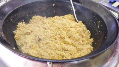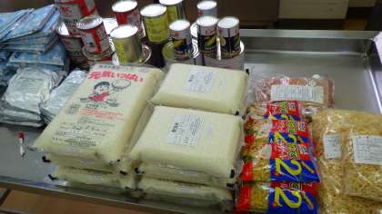 給食では,台風や災害などで給食を中止しなくてはいけなくなった時に,食材が無駄にならないように,長く保管でできる食材を備えています。今日は,給食室で保管しておいた米や缶詰,乾燥野菜などを使用して作りました。