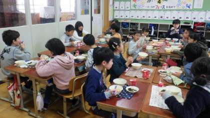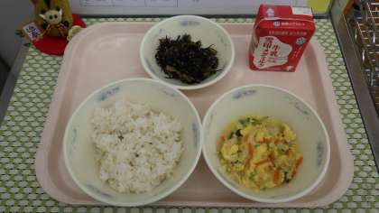「こまつなとひじきのいためものがおいしくて,ほっぺがおちそうでした。」(2年児童)