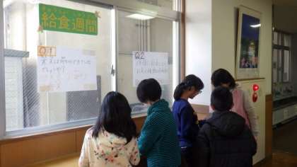 今日は,5年生が給食のクイズラリーを楽しみました。