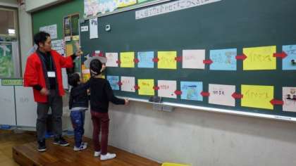 自分たちでつくったすごろくを使って学習しました。一人一人が算数のめあてをもち,数を数えたり,計算をしたりしました。「計算」「イベント」「夜店」など,いろいろなすごろくのこまにとまり,活動を楽しみました。