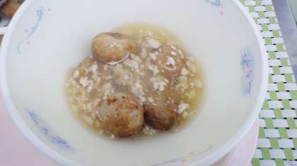 あげ里芋のあんかけは,だし昆布とみりん,しょうゆで下味をつけて煮,冷まして,米粉をまぶして油で揚げています。揚げた里芋に,鶏ひき肉の入ったそぼろあんをかけていただきました。