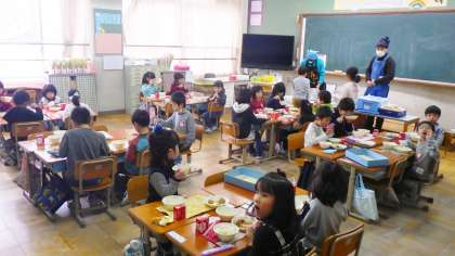 1年生の教室では,「里芋だとは思えない。」「そぼろあんがおいしいから少しずつ食べています。」などの感想を言ってくれました。