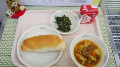 今日は,3クラスがインフルエンザのため学級閉鎖していますが,給食物資はいつもと同じ量が届いています。各クラスに少し多めに配缶しました。ボルシチとパンが大変良く合い,おいしいと好評でした。全く残さいがありませんでした。