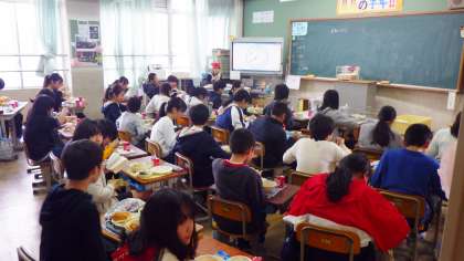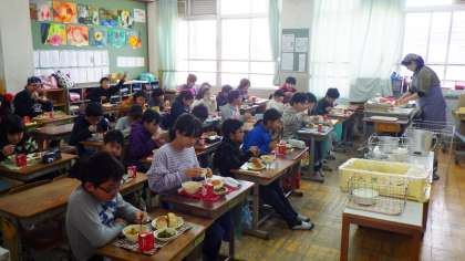 「いつもおいしい給食を作ってくださってありがとうございます。今日は,ボルシチというウクライナ料理を食べて,具に汁の味がしみこんでいて,すごくおいしかったです。またきかいがあれば作って食べたいです。ツナとほうれんそうのソテーは,ツナとほうれんそうがいい感じにまとまって,くせがなく,おいしかったです。また食べたいです。ごちそうさまでした。」(6年児童)