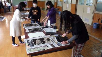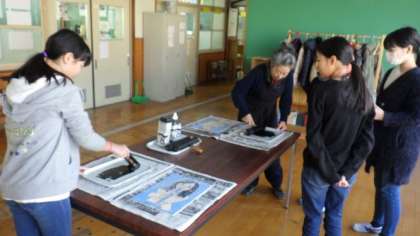 木版を彫り終わった子どもたちから順に刷っています。だんだんと刷り終わる子どもたちが増えてきました。