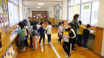 1年生が,ランチルーム前で,給食委員会が作成した食に関するクイズラリーを行いました。