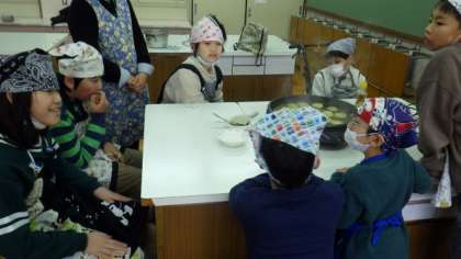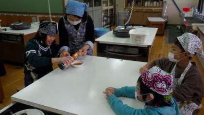 わかたけ学級で育てた大根を使って,調理実習をしました。調味料をはかったり,ホットプレートで焼いたりして,おいしい「大根焼き」を調理しました。