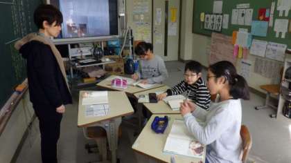 物語文「わらぐつの中の神様」の学習をしています。文を読んで,登場人物の人柄について考えています。