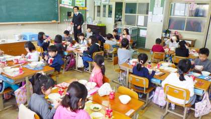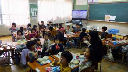 「ぼくは,こうやどうふのたまごとじがおいしかったです。どうしてかというと,こうやどうふをたべたらあじがでてきたからです。」(1年児童)