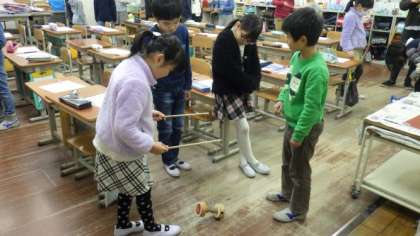 教頭先生が中国(上海)の紹介をしました。また,中国語のクイズをしたり,中国ゴマを体験したりして楽しみました。