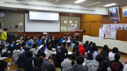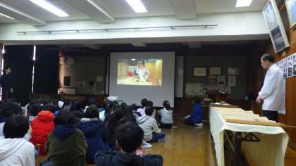 児童はワークシートにメモをしながら,熱心に話を聞いていました。
