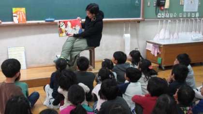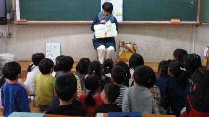 毎週水曜日に,学校運営協議会読書活動部の皆様が読み聞かせをしてくださっています。1・2・3年生の教室で,絵本や大型絵本,紙芝居などを楽しんでいます。