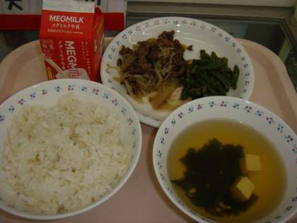 「今日,私がおいしいと思ったのは,牛丼の具です。糸こんにゃくがたくさん入っていてとても歯ごたえがよかったし,牛肉がやわらかくて味がよくしみておいしかったです三度豆のごま煮が食べやすい大きさでごまの味もしていてとてもおいしかったです。すまし汁は,とうふ・わかめともに歯ごたえがよくてとてもおいしかったです。私は,給食を食べるのが今日で終わりですが,また明日も給食を食べたいと思いました。今までありがとうございました。」・・・・・6年生の感想から