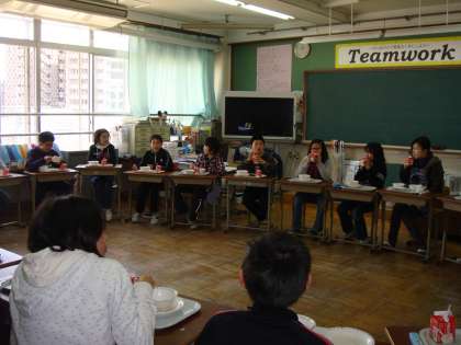 6年生は,最後の給食でしたね。6年生は,教室で円になって食べていました。