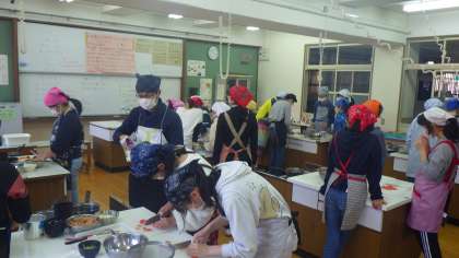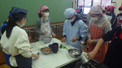 6−1が3・4校時に家庭科室で吸い物を作りました。