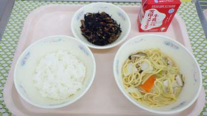 ちゃんぽんには,豚肉・かまぼこ・人参・キャベツ・もやし・しいたけ・しょうがを使いました。具だくさんで好評でした。もっといっぱい食べたいという児童もいました。