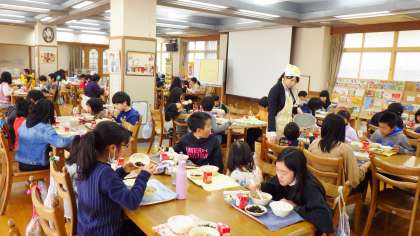 「わたしは,ちゃんぽんがおいしかったです。どうしてかというと,いろいろなぐざいがはいっていて,こころがあたたまるからです。またつくってください。」(1年児童)