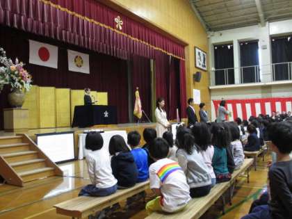 入学式には2年生と6年生が出席しました。「おむかえのことば」の元気な言葉と歌を,ありがとうございました。