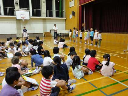 生活科の学習で学校探検をしました。グループに分かれて,2年生が1年生を案内しました。それぞれの教室を回り,その部屋の説明を一生懸命していました。1年生が「楽しく回れた!」と言っていたので,2年生はとても嬉しそうでした。