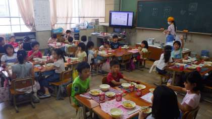 「ぶたにくとキャベツのみそいためがおいしかったです。」(3年児童)