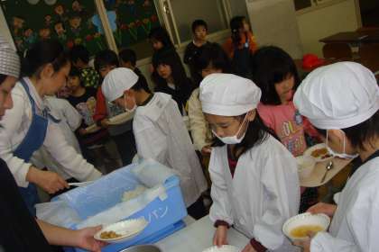 「ぼくは,そぼろどんぶりがおいしかったです。なぜなら,たくさんの野菜が入っていたからです。それにごはんときざみのりを入れることでとてもおいしいごはんになりました。」・・・・・6年生の感想から