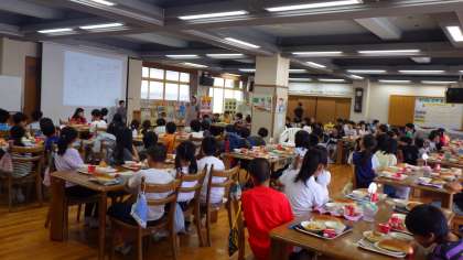 「ソーセージと野菜のいためナムルがおいしかったです。なぜかというと,きゅうりがシャリッとしておいしかったからです。」(2年児童)