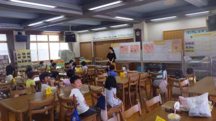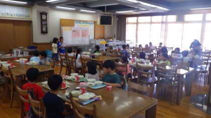 1年3組が4校時にランチルームで食の学習を行いました。