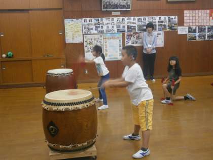 草の芽学級では,週に1回,太鼓の練習をしています。今年度は,「かがり火」という演目に挑戦しています。「どーんどーん,それ!それ!」と,みんなで声を出しながら元気よく取り組んでいます。
