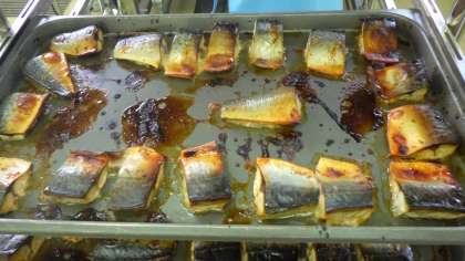 さばのつけ焼きは,スチームコンベクションオーブンを使用して焼きました。