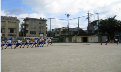 5年生は団体競技で綱引きをします。