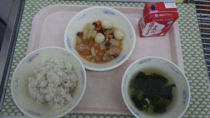 「プリプリちゅうかいためのたまごとこんにゃくがプルンとしておいしかったです。」(1年児童)
