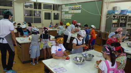 初めて家庭科室で調理実習をしましたが,みんなで協力して,てきぱきと活動ができていました。後片付けも上手にできていました。