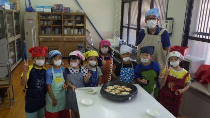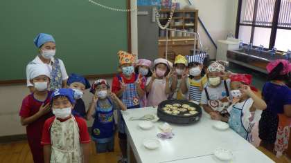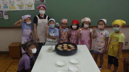 2年1組が3校時に家庭科室でトマトピザ作りをしました。