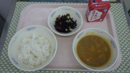 「チキンカレーとはいがまいごはんをいっしょに食べて,いろいろはいっていておいしかったです。」(3年児童)