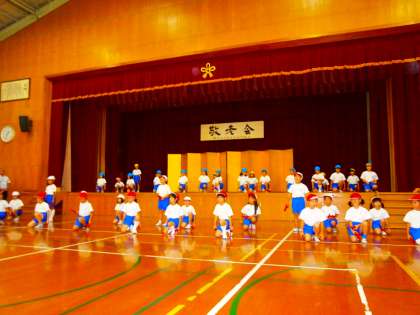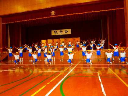 運動会にむけて練習している「にじょっこソーラン」を発表しました。緊張しながらもがんばって踊ることができました。大きな拍手をもらいました。