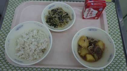 「にくじゃががおいしかったです。肉じゃがのお肉がやわらかくて食べやすかったです。味もちょうどいい味でくせになる味でした。」(6年児童)