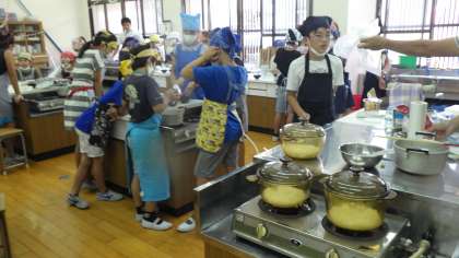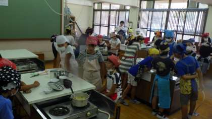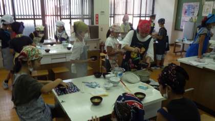 児童は,作り方を確認しながら,作業を分担し協力して実習を行っていました。