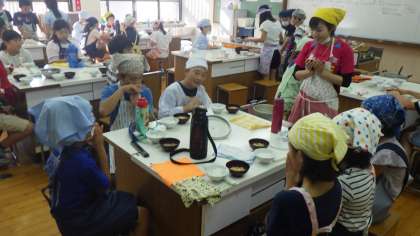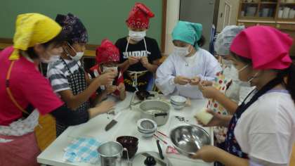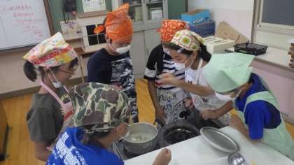 5年3組が5・6校時に家庭科室で調理実習を行いました。